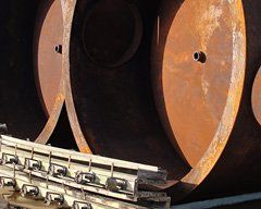 Tanques de armazenamento para combustíveis de 30 milhões de litros cada. Tanques de aço carbono, sem uso, calandrados e desmontados.